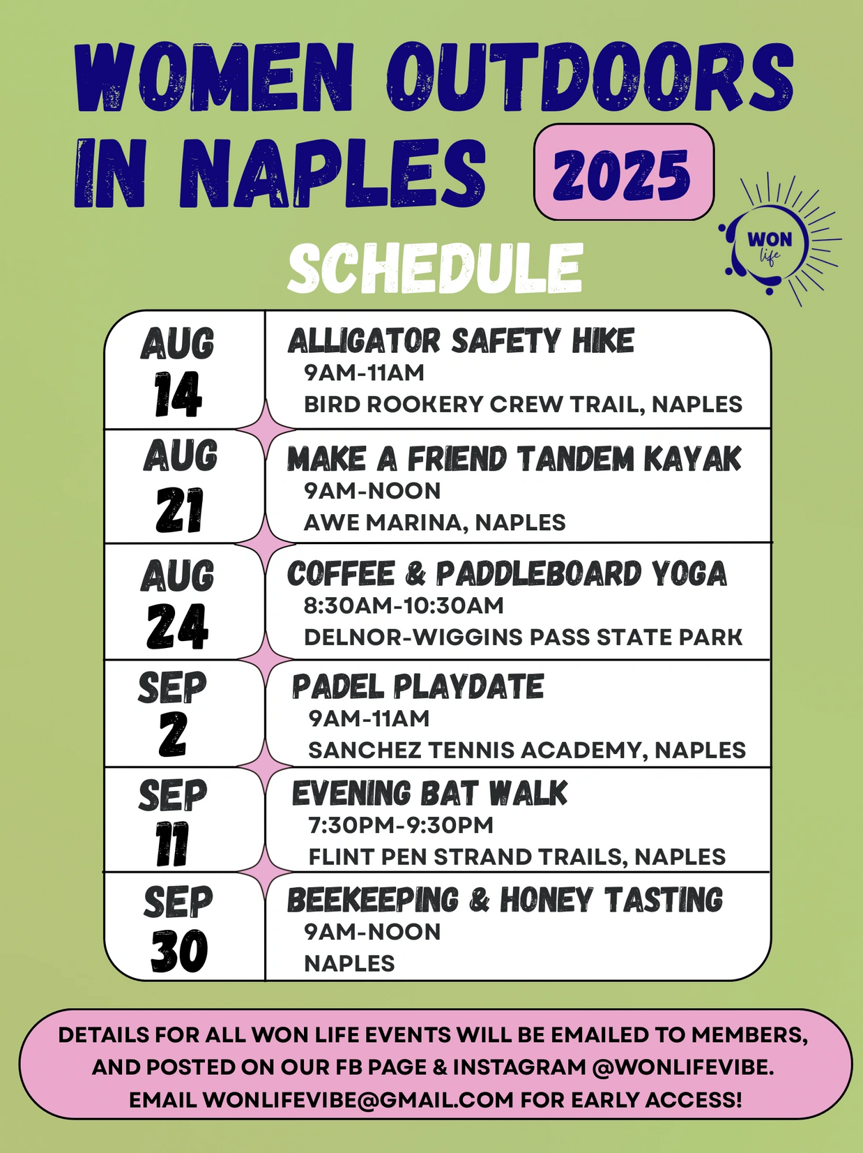 Women Outdoors in Naples is a one-of-a-kind community. Forge real friendships by engaging in nature-based activities and sports.